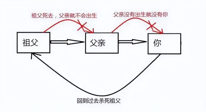如果你穿越回过去,杀死了年轻时的祖父,那你父亲就不会出生,你也不会存在。但如果你不存在,又是谁穿越回去杀了祖父?